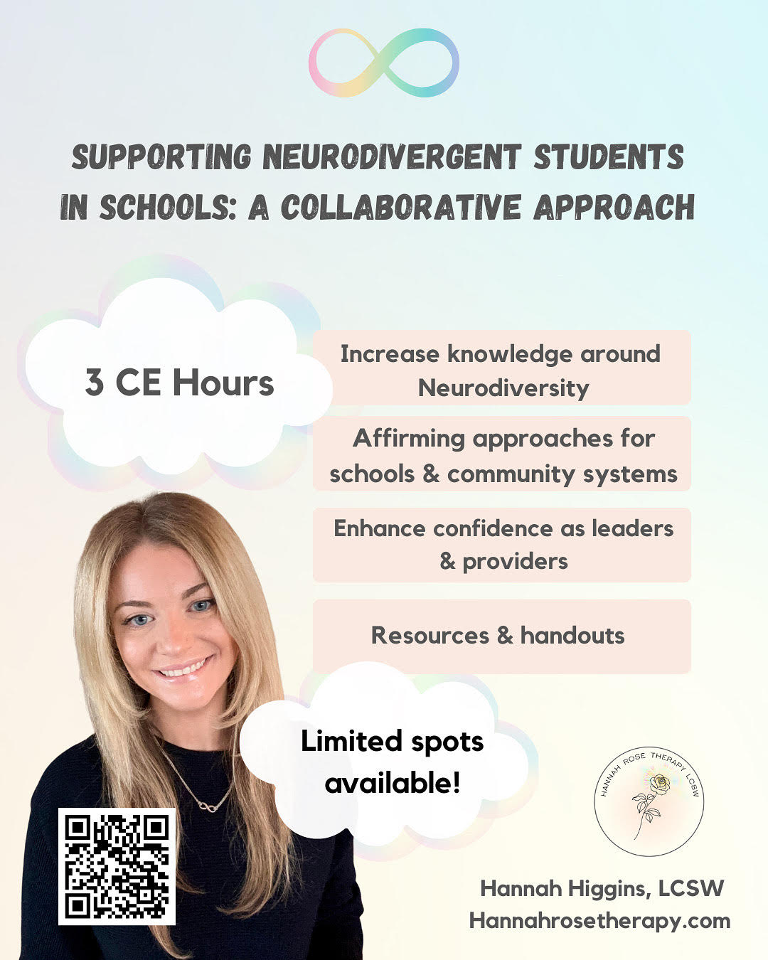 This 3 hour Continued Education opportunity is designed to enhance your understanding of neurodiversity and equip you with affirming, effective strategies to support students and families across school and community settings. Unlike traditional SEL, this training takes an inclusive approach centered on collaboration, empowerment, and practical application. Created and facilitated by a neurodivergent clinician and previous school social worker, this training brings lived experience with professional expertise.